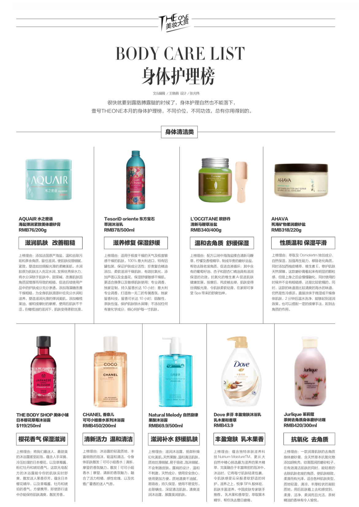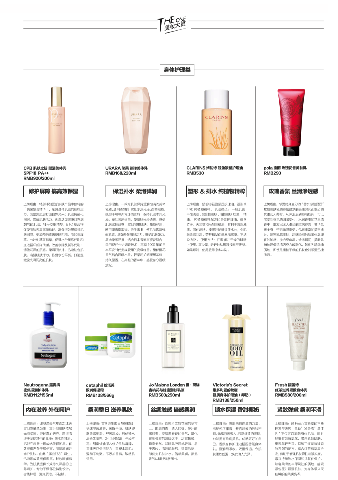 美容Award | 身体护理榜