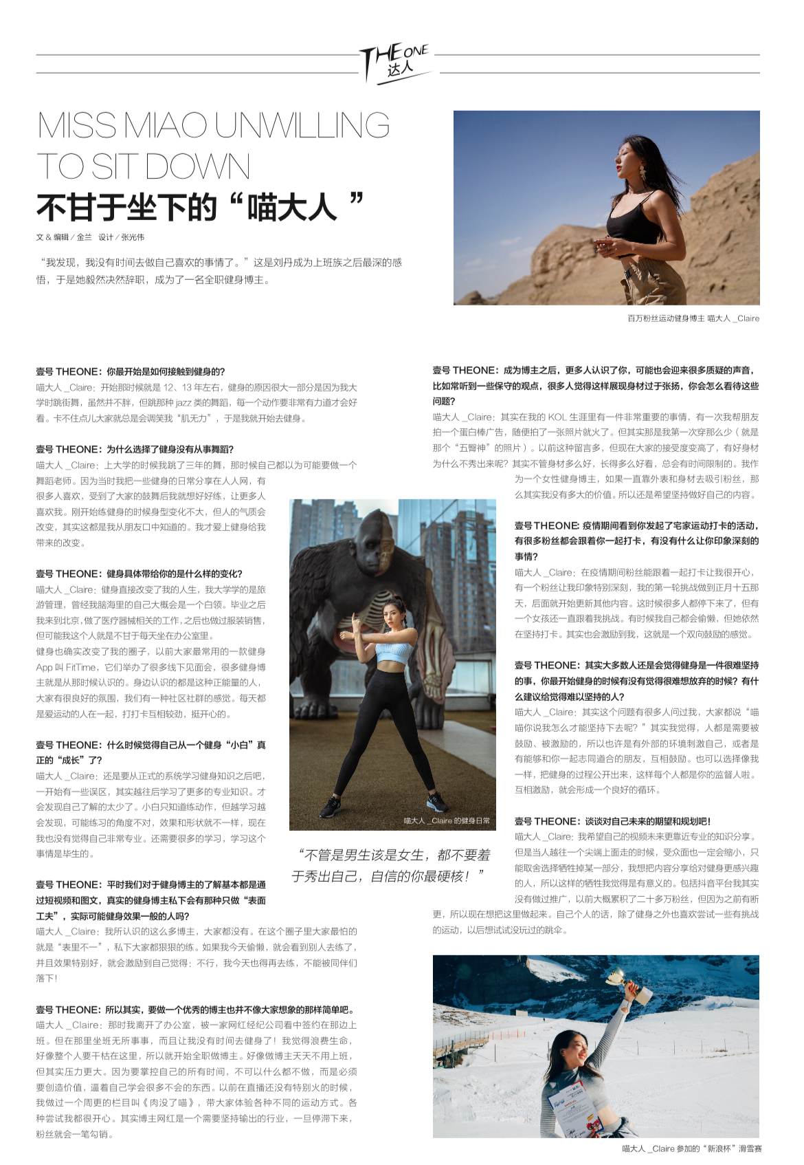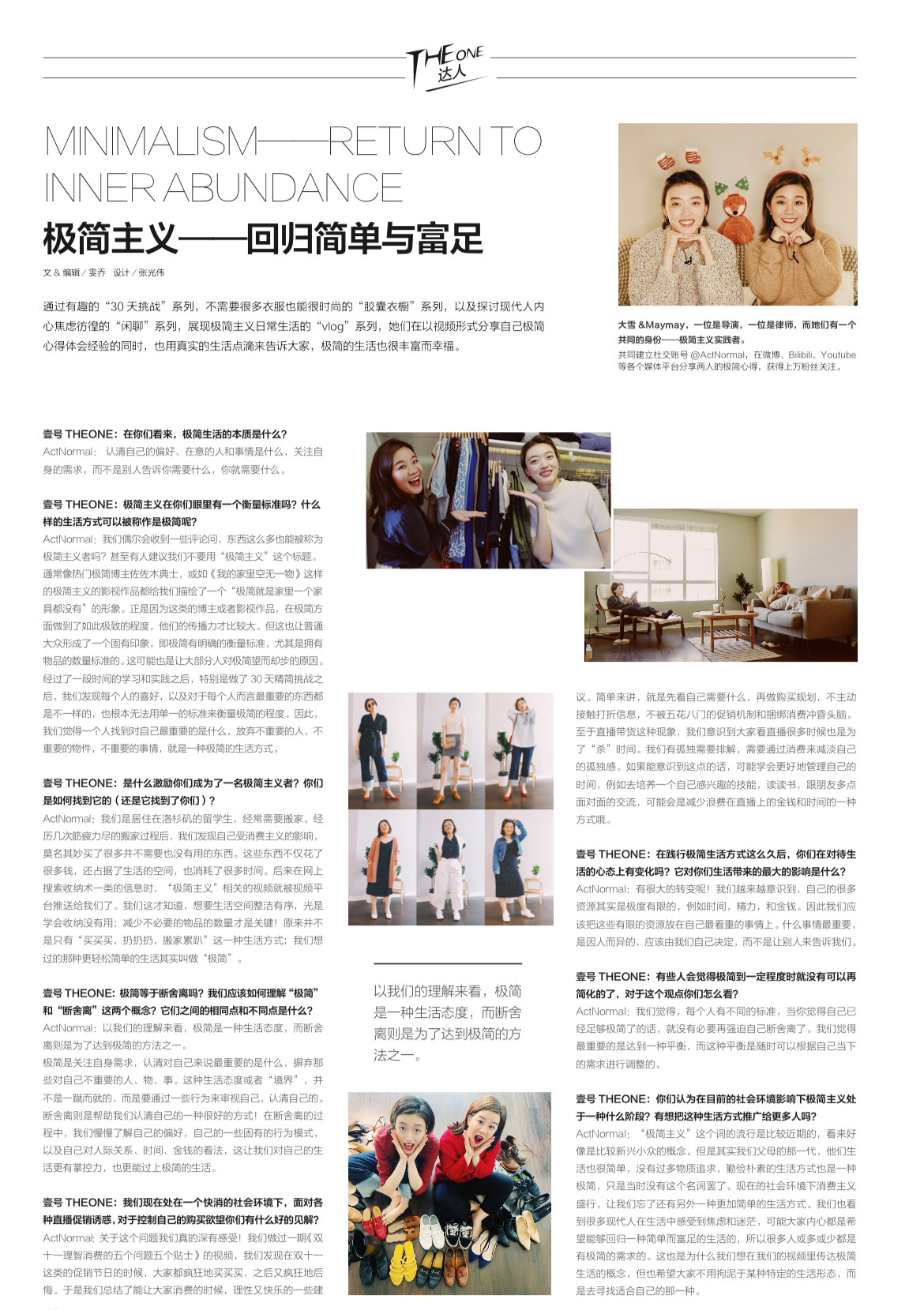 《壹号 THE ONE》杂志是集明星时尚、时装、美容、艺术为一体的时尚月刊,自2012年创刊以来,该刊一直以最耐人寻味的新角度, 最独家的原创报道以及敏锐、深入、艺术化的视角, 为读者评估、分析、记录当下的多元生活, 将高度迭代的时尚文化,以追溯本质的态度,还原于呈现。